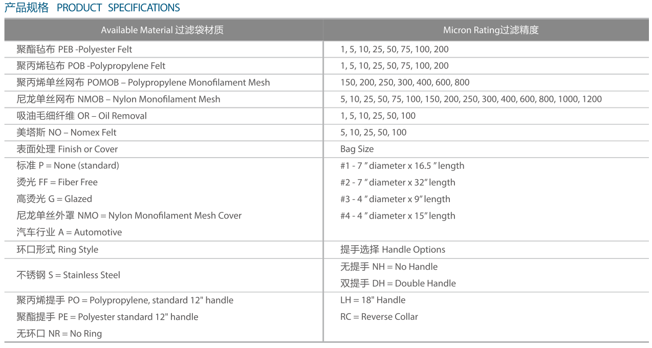 | 產(chǎn)品編號 | 過濾袋 |